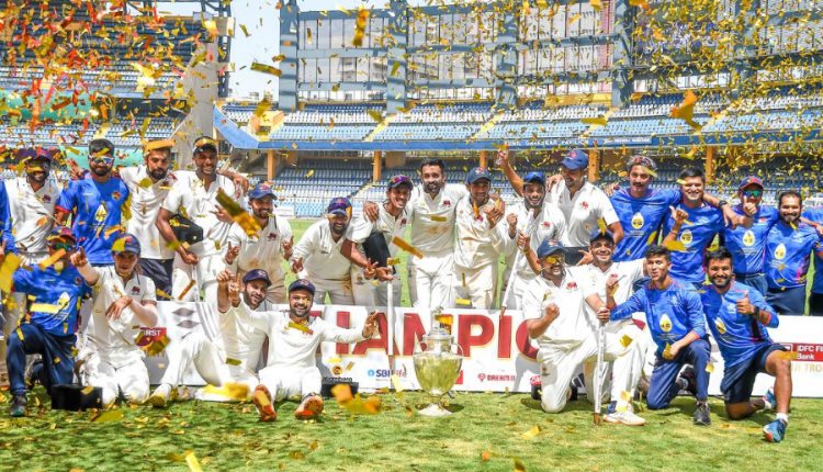 ନୂଆଦିଲ୍ଲୀ: ୮ ବର୍ଷ ପରେ ମୁମ୍ବାଇ ପୂନର୍ବାର ରଣଜୀ ଟ୍ରଫି ଟାଇଟଲ ହାସଲ କରିବାରେ ସଫଳ ହୋଇଛି । ଫାଇନାଲରେ ବିଦର୍ଭକୁ ୧୬୯ ରନରେ ହରାଇ ମୁମ୍ବାଇ ୪୨ତମ ଟାଇଟଲ ହାସଲ କରି ଇତିହାସ ରଚିଛି । ମୁମ୍ବାଇ ୫୩୮ ରନର ବିଶାଳ ଲକ୍ଷ୍ୟ ବିଦର୍ଭ ସମ୍ମୁଖରେ ରଖିଥିଲା । ପ୍ରଥମ ଇନିଂସରେ ଭଲ ବ୍ୟାଟିଂ ପ୍ରଦର୍ଶନ କରିପାରି ନ ଥିବା ବିଦର୍ଭ କିନ୍ତୁ ଦ୍ୱିତୀୟ ଇନିଂସରେ ମୁମ୍ବାଇକୁ ନାକେଦମ କରିଥିଲା । କରୁଣ ନାୟାର (୭୪), ଅକ୍ଷୟ ୱାଡେକର (୧୦୨) ଓ ହର୍ଷ ଦୁବେ (୬୫) ରନର ଇନିଂସ ଖେଳିଥିଲେ । ଏମାନେ ଆଉଟ ହେବା ପରେ ମୁମ୍ବାଇ ହାତମୁଠାକୁ ମ୍ୟାଚ ଚାଲି ଯାଇଥିଲା । ମୁମ୍ବାଇ ପକ୍ଷରୁ ତନୂଷ କାଟିୟାନ ସର୍ବାଧିକ ୪ଟି ୱିକେଟ ନେଇଥିଲେ । ତୁଷାର ଦେଶପାଣ୍ଡେ ଓ ମୂଶୀର ଖାଁ ୨ଟି ଲେଖାଏଁ ୱିକେଟ ଅକ୍ତିଆର କରିଥିଲେ ।