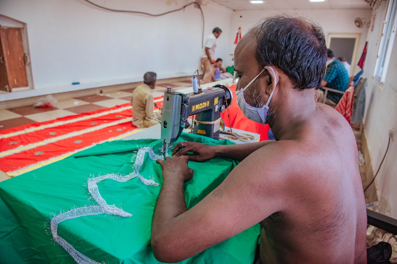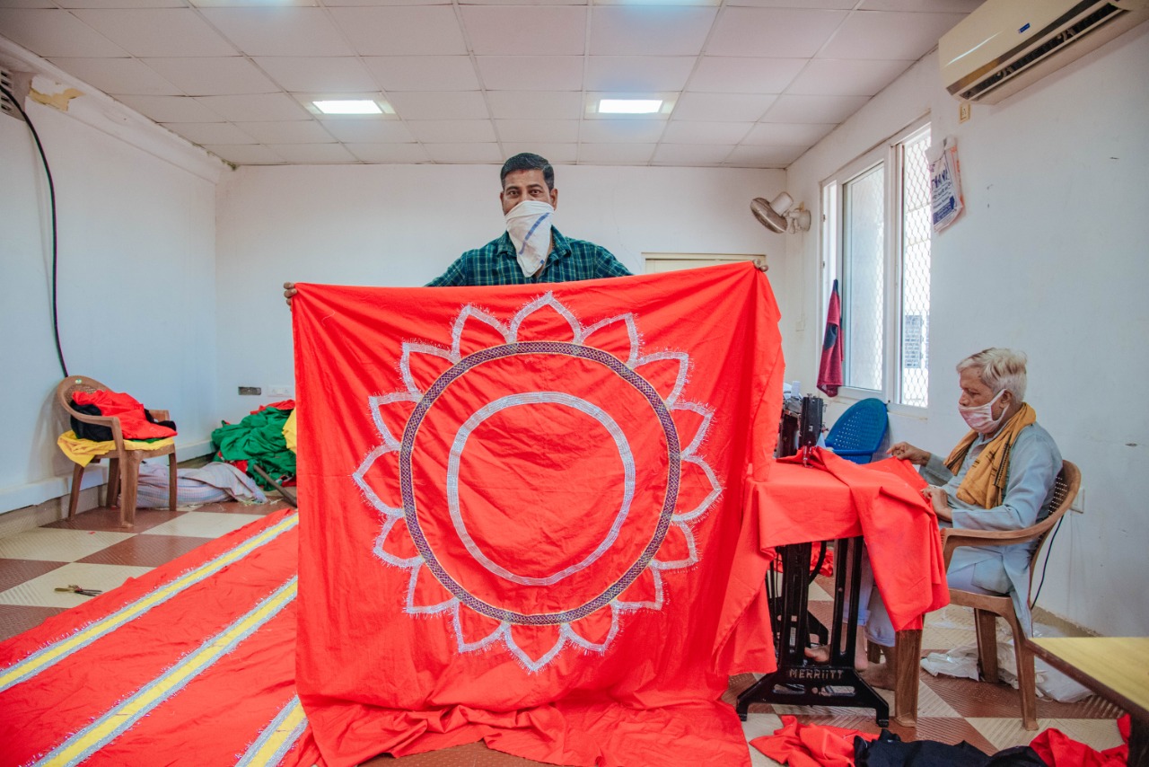 ଶ୍ରୀମନ୍ଦିର କାର୍ଯ୍ୟାଳୟ ଉପର ମହଲାରେ ଦରଜୀ ସେବକମାନେ ରଥ ଯୋର ସହ ରଥ କନାରେ ଜରୀଫିତା ସିଲାଇ, କନା ଯୋଡ଼ଣି କାମ ଜାରି ରଖିଛନ୍ତି ।