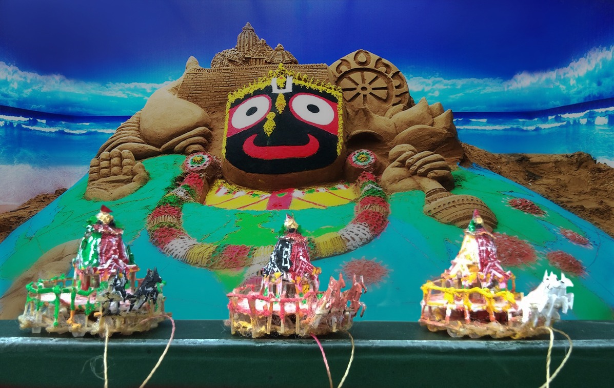 ପୁରୀ: ଆନ୍ତର୍ଜାତୀୟ ସ୍ତରରେ ଖ୍ୟାତି ସମ୍ପନ୍ନ ବାଲୁକା ଶିଳ୍ପୀ ସୁଦର୍ଶନ ପଟ୍ଟନାୟକ ପୁରୀ ବେଳାଭୂମିରେ ପ୍ରଭୁ ଜଗନ୍ନାଥ, ବଳଭଦ୍ର ଏବଂ ଦେବୀ ସୁଭଦ୍ରାଙ୍କ ତିନି ରଥର ମୂର୍ତ୍ତି ତିଆରି କରି ରଥଯାତ୍ରାର ଶୁଭେଚ୍ଛା ପ୍ରଦାନ କରିଛନ୍ତି ।