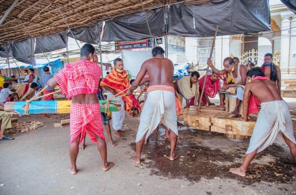 ପୁରୀ: ମହାପ୍ରଭୁ ଶ୍ରୀଜଗନ୍ନାଥଙ୍କ ବିଶ୍ୱପ୍ରସିଦ୍ଧ ରଥଯାତ୍ରା ଲାଗି ଦ୍ରୁତ ଗତିରେ ଚାଲିଛି ତିନିରଥର ନିର୍ମାଣ କାର୍ଯ୍ୟ । ସୋମବାର ସନ୍ଧ୍ୟା ସୁଦ୍ଧା ସମସ୍ତ ୪୨ଟି ତୁମ୍ବ ବିନ୍ଧ ନିର୍ମାଣ କାର୍ଯ୍ୟ ସମ୍ପୂର୍ଣ୍ଣ ଶେଷ ହୋଇଛି । ରଥଖଳାରେ ସମସ୍ତ କାରିଗର ସେବକମାନଙ୍କ ଦ୍ୱାରା ଆଜି ସୁଦ୍ଧା ସମୁଦାୟ ୨୪ଟି ଚକ ନିର୍ମାଣ ସରିଛି ।