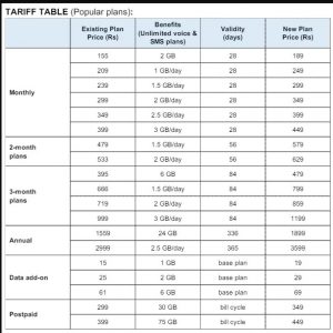 ସୂଚନା ଅନୁସାରେ, ୨୮ ଦିନିଆ ୨ ଜିବି ଡାଟା ମିଳୁଥିବା ୧୫୫ ଟଙ୍କିଆ ପ୍ଲାନ ଏବେ ୧୮୯ ଟଙ୍କାକୁ ବୃଦ୍ଧି କରାଯାଇଛି । ସେହିପରି ଦିନକୁ ୧ ଜିବି ଡାଟା ମିଳୁଥିବା ୨୦୯ ଟଙ୍କିଆ ପ୍ଲାନ ଏବେ ୨୪୯ରେ ପହଞ୍ଚି ଯାଇଛି । ଦିନକୁ ୧.୫ ଜିବି ଡାଟା ମିଳୁଥିବା ୨୩୯ ଟଙ୍କିଆ ପ୍ଲାନ ଏବେ ୨୯୯ରେ ପହଞ୍ଚି ଥିବା ବେଳେ ଦିନକୁ ୨ ଜିବି ଡାଟା ମିଳୁଥିବା ୨୯୯ ଟଙ୍କିଆ ପ୍ଲାନ ଏବେ ୩୪୯ରେ ପହଞ୍ଚିଛି । ସେହିପରି ଦିନକୁ ୨.୫ ଜିବି ଡାଟା ମିଳୁଥିବା ୩୪୯ ଟଙ୍କିଆ ପ୍ଲାନ ଏବେ ୩୯୯ରେ ପହଞ୍ଚିଥିବା ବେଳେ ଦିନକୁ ୩ ଜିବି ଡାଟା ମିଳୁଥିବା ୩୯୯ ଟଙ୍କିଆ ପ୍ଲାନ ଏବେ ୪୪୯ ଟଙ୍କାରେ ପହଞ୍ଚିଛି ।
