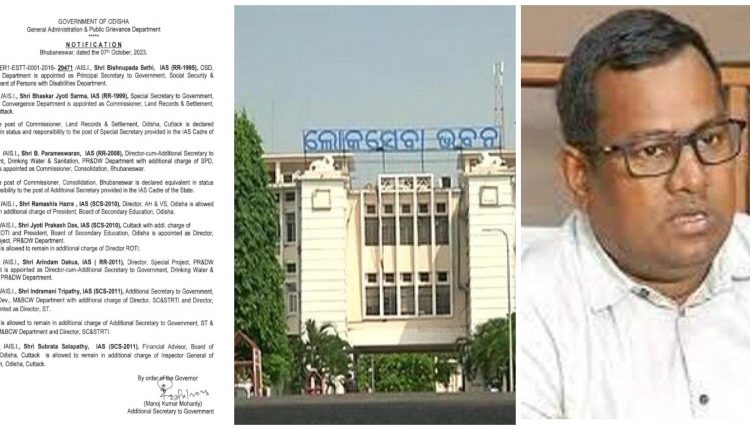 ଜ୍ୟୋତିପ୍ରକାଶ ଦାସଙ୍କୁ ପଞ୍ଚାୟତିରାଜ ବିଭାଗ ନିର୍ଦ୍ଦେଶକ ଦାୟିତ୍ବ ମିଳିଛି । ସେହିପରି ରାମାଶିଷ ହାଜରାଙ୍କୁ BSE ସଭାପତି ଭାବେ ଅତିରିକ୍ତ ଦାୟିତ୍ବ ଦିଆଯାଇଛି । ଅରିନ୍ଦମ ଡାକୁଆଙ୍କୁ ପାନୀୟ ଜଳ ଓ ପରିମଳ ବିଭାଗ ନିର୍ଦ୍ଦଶକ କରାଯାଇଛି । ଅନ୍ୟପଟେ ଇନ୍ଦ୍ରମଣି ତ୍ରିପାଠୀଙ୍କୁ ଏସଟି ବିଭାଗର ନିର୍ଦ୍ଦେଶକ ଦାୟିତ୍ବ ଦିଆଯାଇଥିବାବେଳେ ସୁବ୍ରତ ଶତପଥିଙ୍କୁ ଆଇଜିଆର୍ ଭାବେ ଅତିରିକ୍ତ ଦାୟିତ୍ବ ମିଳିଥିବା ସୂଚନା ମିଳିଛି ।