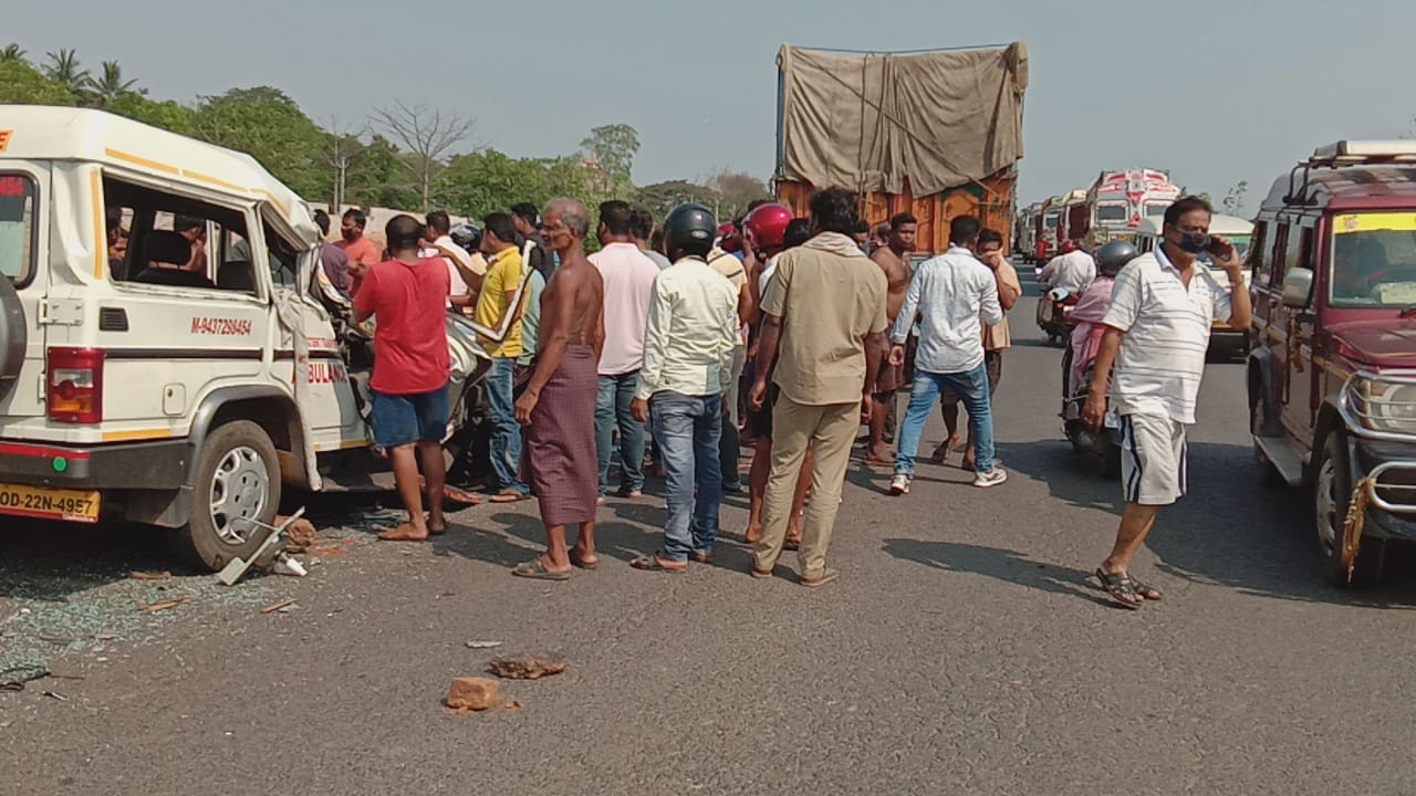 ଯାଜପୁର: ପୁରୀରୁ ଶବ ସଂସ୍କାର କରି ଫେରୁଥିବା ଏକ ଆମ୍ବୁଲାନ୍ସ ସହ ଗୋଟିଏ ଟ୍ରକର ମୁହାଁମୁହିଁ ଧକ୍କା ହେବା ଫଳରେ ମର୍ମନ୍ତୁଦ ସଡକ ଦୁର୍ଘଟଣା ଘଟିଛି।