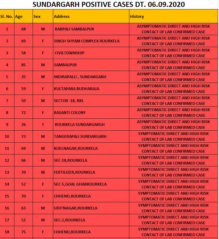 ୩୮ ଜଣଙ୍କର ମୃତ୍ୟୁ ଏବଂ ୪୧୬୦ ଜଣ ଆରୋଗ୍ୟଙ୍କ ସହିତ ସୁନ୍ଦରଗଡରେ ବର୍ତ୍ତମାନ ୭୪୧ ଟି ସକ୍ରିୟ ମାମଲା ରହିଛି।