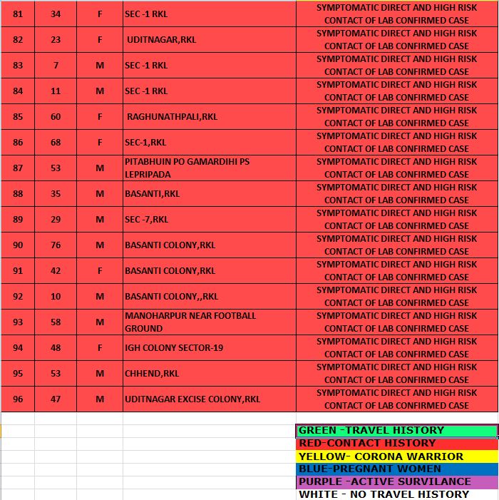 ରାଉରକେଲା: ସୋମବାର ଦିନ ସୁନ୍ଦରଗଡରୁ ୯୬ ଟି ନୂତନ ମାମଲା ଚିହ୍ନଟ ହୋଇଥିବା ବେଳେ କେବଳ ଷ୍ଟିଲ ସିଟି ରାଉରକେଲାରୁ ଚିହ୍ନଟ ହୋଇଛନ୍ତି ୮୪ ନୂଆ ପଜିଟିଭ। ଏହାକୁ ମିଶାଇ ରାଉରକେଲାରେ ମୋଟ ସଂଖ୍ୟା ଛୁଇଁଛି ୪୯୪୩। ଏହି ନୂତନ ସଂକ୍ରମିତଙ୍କ ମଧ୍ୟରୁ ଜଣେ NIT କ୍ୟାମ୍ପସରୁ ଚିହ୍ନଟ ହୋଇଥିବା ଜଣାପଡିଛି । ବାକି ଆକ୍ରାନ୍ତ ଜିଲ୍ଲାର ବିଭିନ୍ନ ଅଞ୍ଚଳର ବୋଲି ଜଣାପଡିଛି। ସଂକ୍ରମିତ ଲୋକଙ୍କ ମଧ୍ୟରେ ଆଉ ଜଣେ ଏନଟିପିସି କର୍ମଚାରୀ ମଧ୍ୟ ଅଛନ୍ତି।