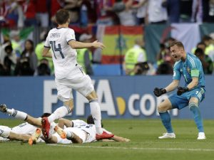 ମସ୍କୋ : ବିଶ୍ୱକପ ଫୁଟବଲରେ ନିଜ ଦେଶଲାଗି ଇତିହାସ ସୃଷ୍ଟି କରିଛି ରୁଷିଆ ଦଳ । ପ୍ରି-କ୍ୱାର୍ଟର ଫାଇନାଲରେ ଆୟୋଜକ ରୁଷିଆ ଶକ୍ତିଶାଳୀ ସ୍ପେନ ଦଳକୁ ଅପ୍ରତ୍ୟାଶିତ ଭାବେ ମ୍ୟାଚ ୧-୧ ରେ ଡ୍ର ରଖିବା ପରେ ପେନାଲ୍ଟି ସୁଟ ଆଉଟରେ ୪-୩ ଗୋଲ ବ୍ୟବଧାନରେ ବିଜୟ ହାସଲ କରିପାରିଛି । ଫଳରେ ରୁଷିଆ କ୍ୱାର୍ଟର ଫାଇନାଲକୁ ପ୍ରବେଶ କରିଛି ।