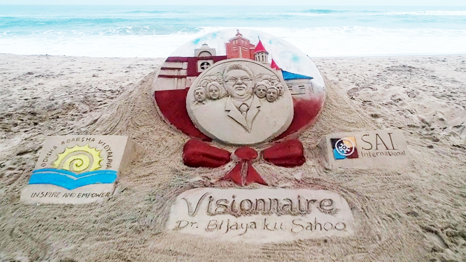 ସ୍କୁଲର ପୁରାତନ ଛାତ୍ରଛାତ୍ରୀମାନେ ଡଃ ସାହୁଙ୍କୁ ଅଶ୍ରୁଳ ଶ୍ରଦ୍ଧାଞ୍ଜଳି ଦେବା ଉଦ୍ଦେଶ୍ୟରେ ପୁରୀଠାରେ ବାଳୁକା ଶିଳ୍ପୀ ମାନସ ସାହୁଙ୍କ ତତ୍ୱାବଧାନରେ ଏକ ବାଳୁକା କଳା ପ୍ରସ୍ତୁତ କରିଥିଲେ।