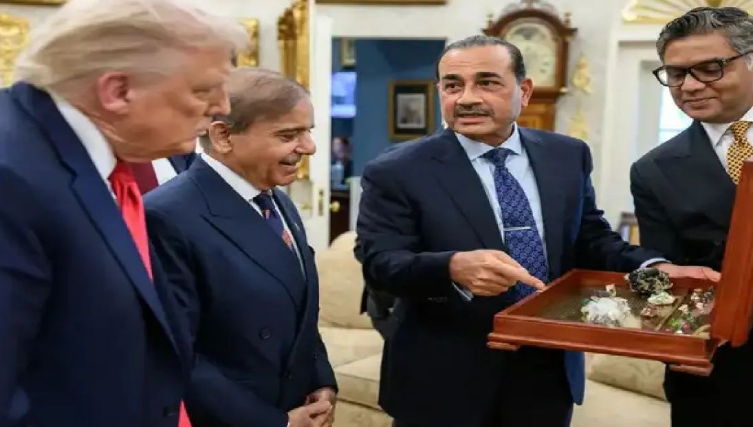 ହ୍ୱାଇଟ୍ ହାଉସରେ ପାକିସ୍ତାନ ପ୍ରଧାନମନ୍ତ୍ରୀ ଶହବାଜ ସରିଫ ଏବଂ ସେନା ମୁଖ୍ୟ ମୁନିରଙ୍କ ସହ ଡୋନାଲ୍ଡ ଟ୍ରମ୍ପଙ୍କ ସାକ୍ଷାତର ଏକ ଫଟୋ ସାମ୍ନାକୁ ଆସିଛି। ଏଥିରେ ସେମାନେ ଆମେରିକା ରାଷ୍ଟ୍ରପତିଙ୍କୁ ବିରଳ ଖଣିଜ ପଦାର୍ଥ ଉପହାର ଦେଉଥିବାର ଦେଖାଯାଇଛି। ଫଟୋରେ ମୁନିର ଏକ ଖୋଲା କାଠ ବାକ୍ସକୁ ଇଙ୍ଗିତ କରୁଥିବା ଦେଖାଯାଇଛି ଯାହା ବିରଳ ଖଣିଜ ପଦାର୍ଥ ଧାରଣ କରିଛି। ଟ୍ରମ୍ପ ତା’ପରେ ସରିଫ ଏବଂ ମୁନିରଙ୍କୁ ବହୁତ ପ୍ରଶଂସା କରିଛନ୍ତି।