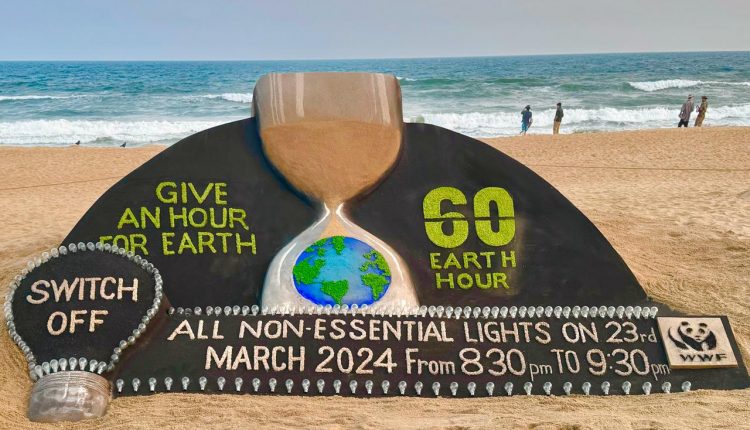 ଆଜି ରାତି ୮ଟା ୩୦ରୁ ୯ଟା ୩୦ଯାଏଁ ଅର୍ଥାତ୍ ଏକ ଘଣ୍ଟା ଘରେ ସମସ୍ତ ଲାଇଟ୍ ବନ୍ଦ କରି ଏହି ଦିବସକୁ ପାଳନ କରିବେ ବିଶ୍ବବାସୀ । ଏହି ଅବସରରେ ବାଲୁକା ଚିତ୍ର ଶିଳ୍ପୀ ସୁଦର୍ଶନ ପଟ୍ଟନାୟକ ବାଲୁକା ଚିତ୍ରକଳା ମାଧ୍ୟମରେ ସଚେତନତା ବାର୍ତ୍ତା ଦେଇଛନ୍ତି । ବିଦ୍ୟୁତ୍ ଅପଚୟ ରୋକିବା, ପରିବେଶ ସୁରକ୍ଷା ଦିଗରେ ଲୋକମାନଙ୍କ ଭିତରେ ଏକ ସଚେତନତା ବାର୍ତ୍ତା ପାଇଁ ଏହି ଦିବସ ପାଳନ କରାଯାଉଛି । ବାଲୁକା ଚିତ୍ର ଶିଳ୍ପୀ ସୁଦର୍ଶନ ପଟ୍ଟନାୟକ ପୁରୀରେ ଏକ ବାଲୁକା ଚିତ୍ରକଳା କରି ଆର୍ଥ ଆୱାର ପାଳନ ପାଇଁ ଦେଶବାସୀଙ୍କୁ ଆହ୍ଵାନ ଦେଇଛନ୍ତି । ପୁରୀ ବେଳାଭୂମିର ନିଳାଦ୍ରୀ ବିଚରେ ସୁଦର୍ଶନ ପଟ୍ଟନାୟକ ଏହି ସୁନ୍ଦର ବାଲୁକା ଚିତ୍ରକଳା ଗଢିଛନ୍ତି ।