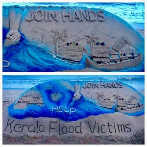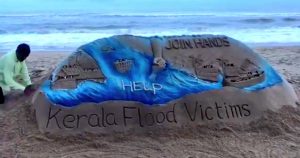 ପୁରୀ ବେଳାଭୂମୀରେ ଏହି ଆନ୍ତର୍ଜାତୀକ ଖ୍ୟାତି ସମ୍ପନ୍ନ ବାଲୁକା କଳା ଶିଳ୍ପୀ ସୁଦର୍ଶନ ପଟ୍ଟନାୟକ ଏକ ସୁନ୍ଦର ବାଲୁକା କଳା କେରଳ ବନ୍ୟା ପୀଡ଼ିତଙ୍କ ଲାଗି ଉତ୍ସର୍ଗ କରିଛନ୍ତି ।