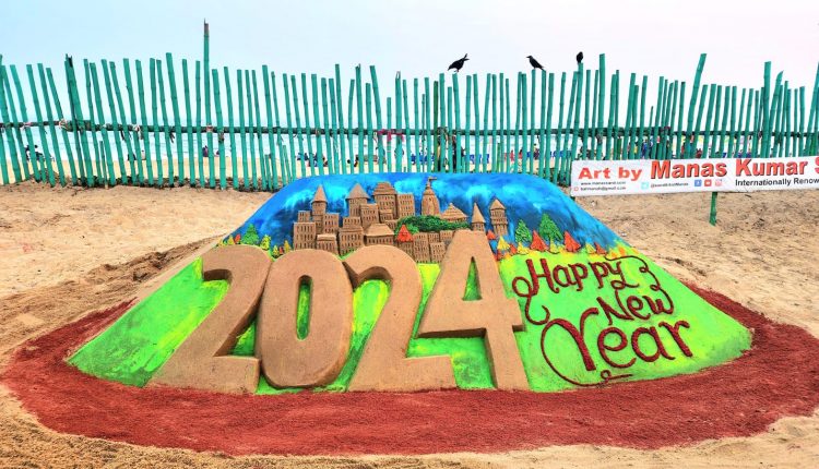 ବାଲୁକା କଳାରେ ନବବର୍ଷ ଶୁଭେଚ୍ଛା ଜଣାଇଲେ ବାଲୁକା ଶିଳ୍ପୀ ମାନସ ସାହୁ