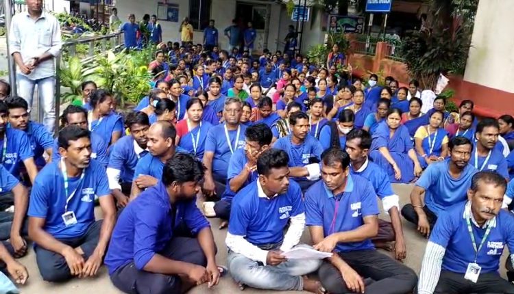 ନୂଆ ସଂସ୍ଥାକୁ ଟେଣ୍ଡର ଦିଆଯାଇଥିବା ବେଳେ ଏହାକୁ ବିରୋଧ କରି ସଫେଇ କର୍ମଚାରୀ ପ୍ରତିବାଦ କରିଛନ୍ତି ।