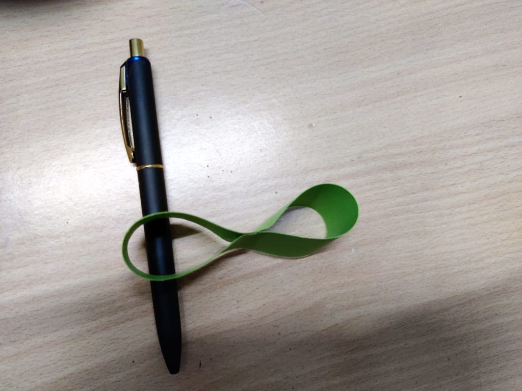 ୨- କାଗଜ ପଟିର ଗୋଟିଏ ଧାରରେ ଅଠା ଲଗାଇ ଦୁଇ ମୁଣ୍ଡକୁ ଯୋଡି ଦିଅ । ଆମକୁ ଗୋଟିଏ ଗୋଲ ପଟି ମିଳିବ