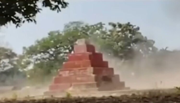 ବୋମାରେ କେବଳ ତଳ ଅଂଶ ହିଁ ଭୁଷୁଡି ଥିଲା । ଏହାପରେ ଶାବଳ ଏବଂ ଅନ୍ୟ ଲୁହା ଛଡ ସହ ସହିଦସ୍ତମ୍ଭକୁ ଭଙ୍ଗା ଯାଇଥିଲା।