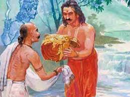 ମହାଭାରତରେ ବର୍ଣ୍ଣିତ ଗୋଟିଏ କଥା ଅନୁସାରେ ମହାଦାନୀ କର୍ଣ୍ଣ ଅର୍ଜୁନଙ୍କ ବାଣରେ ପରାଜୟ ଲାଭ କରି ପ୍ରାଣତ୍ୟାଗ କରିବା ପୂର୍ବରୁ ଶ୍ରୀକୃଷ୍ଣ ତାଙ୍କୁ ଶେଷ ଇଛା ପୁଚ୍ଛନ୍ତେ ସେ ଦୁଇଟି କଥା କହିଥିଲେ । ପ୍ରଥମତଃ ତାଙ୍କ ମୃତ୍ୟୁ ସମ୍ବାଦ ପ୍ରଥମେ ମା କୁନ୍ତୀଙ୍କୁ ଦିଆଯିବା ଉଚିତ କାରଣ ସେ ଥିଲେ ତାଙ୍କର ପ୍ରଥମ ସନ୍ତାନ । ଦ୍ୱିତୀୟତଃ ସେ ଜୀବନକାଳ ମଧ୍ୟରେ ବହୁ କିଛି ଦାନ ଦେବା ପାଇଁ ସକ୍ଷମ ହୋଇଥିଲେହେଁ କେବେ ଅନ୍ନଦାନ କରିନଥିଲେ । ତେଣୁ ପରଜନ୍ମରେ ସେ ଏକ ସମର୍ଥ ପରିବାରରେ ଜନ୍ମ ଗ୍ରହଣ କଲେ ପ୍ରଚୁର ଅନ୍ନଦାନ କରିପାରିବେ ବୋଲି ଇଚ୍ଛା ହେବ ବୋଲି ପ୍ରତିଶ୍ରୁତି ଦେଇଥିଲେ ।