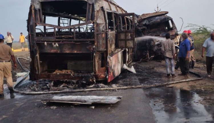 ହାଇଦ୍ରାବାଦ:ଆନ୍ଧ୍ରପ୍ରଦେଶରେ ଭୟଙ୍କର ଦୁର୍ଘଟଣା ଘଟିଛି । ଆନ୍ଧ୍ରପ୍ରଦେଶର ବାପାଟଲା ଜିଲ୍ଲାର ହାଇଦ୍ରାବାଦ-ବିଜୟୱାଡା ରାଜପଥରେ ଆଜି ସକାଳେ ମର୍ମନ୍ତୁଦ  ଦୁର୍ଘଟଣା ଘଟିଛି । ଫଳରେ ଘଟଣାସ୍ଥଳରେ ୬ ଜଣ ଜୀବନ୍ତ ଦଗ୍ଧ ହୋଇ ଯାଇଛନ୍ତି । ଏଥିରେ  ୩୨ ଜଣ ଆହତ ହୋଇଛନ୍ତି । ଆହତ ହୋଇଥିବା ୩୨ ଜଣଙ୍କୁ ଡାକ୍ତରଖାନାରେ ଭର୍ତ୍ତି କରାଯାଇଛି ।