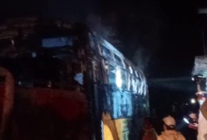 ବିଦ୍ୟୁତ ତାର ଲାଗି ଜଳିଗଲା ବସ୍: ୬ ଯାତ୍ରୀ ଜୀବନ୍ତ ଦଗ୍ଧ, ୧୭ ଗୁରୁତର