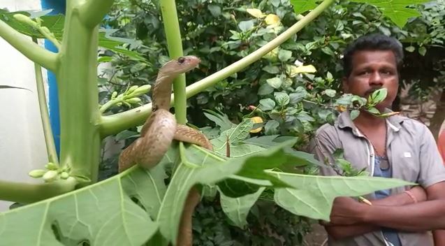 ଭୁବନେଶ୍ୱର: ଅମୃତଭଣ୍ଡା ଗଛରେ ଫଣା ଟେକିଛି ନାଗ ସାପ । ଗୋଡ଼େଇ ହୋଇ ଗଛରେ ରହିଥିଲା । ଏଦୃଶ୍ୟ ହେଉଛି ଭୁବନେଶ୍ୱର ଭୀମପୁର ଅଞ୍ଚଳ । ସକାଳୁ ସକାଳୁ ଅମୃତଭଣ୍ଡା ଗଛରେ ସାପ ଥିଲା ଲୋକ ଦେଖିଥିଲେ । ଫୁଲ ତୋଳିବାକୁ ଯାଇଥିବା ବେଳେ କିଛି ଲୋକ ଅମୃତଭଣ୍ଡା ଗଛରେ ସାପ ଚଢ଼ିଥିବା ଦେଖିଥିଲେ । ଏହି ଖବର ଜଣା ପଡିବା ପରେ ସାପ ଦେଖିବାକୁ ସେଠାରେ ଲୋକଙ୍କର ଭିଡ ଜମିଥିଲା ।