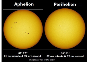 ସୂର୍ଯ୍ୟ ଚାରିପଟେ ସମସ୍ତ ଗ୍ରହ ଏକ ଅଣ୍ଡାକାର ପଥରେ ଘୁରୁଛନ୍ତି । ସପ୍ତଦଶ ଶତାବ୍ଦୀରେ ଜର୍ମାନ ବୈଜ୍ଞାନିକ ଜୋହାନସ କେପରଲ ଏହା ପ୍ରମାଣ କରିଥିଲେ । ଅଣ୍ଡାକାର କକ୍ଷରେ ଘୁରିବା ବେଳେ ଯେତେବେଳେ ପୃଥିବୀ ସୂର୍ଯ୍ୟଠାରୁ କମ ଦୂରତା (୧୪.୭୧କୋଟି କିମି) ରେ ରହେ ସେତେବେଳେ ସୂର୍ଯ୍ୟର ଆକାର ବଡ (୩୨’ ୩୨”) ଦେଖାଯାଏ । ଆଉ ଯେତେବେଳେ ସବୁଠୁ ଅଧିକ ଦୂର (୧୫.୨୧କୋଟି କିମି) ରେ ରହେ ସେତେବେଳେ ସୂର୍ଯ୍ୟର ଆକାର ଛୋଟ (୩୧’ ୨୭”) ଦେଖାଯାଏ । ଗୋଟିଏ ବର୍ଷ ଭିତରେ ଏମିତି ସ୍ଥିତି ଥରେ ଆସେ । ଜାନୁଆରୀ ମାସରେ ପୃଥିବୀ-ସୂର‌୍ୟ୍ୟ ଭିତରେ ସବୁଠୁ କମ ଦୂରତା ରହୁଥିବା ବେଳେ ଜୁଲାଇ ମାସ ବେଳକୁ ସବୁଠୁ ଅଧିକ ଦୂରତା ରହେ ।