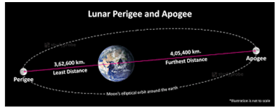 ଠିକ ସେହିପରି ଚନ୍ଦ୍ର ମଧ୍ୟ ପୃଥିବୀ ଚାରିପାଖେ ଏକ ଅଣ୍ଡାକାର ପଥରେ ଘୁରୁଛି । ତେଣୁ ପାଖକୁ (୩.୩୦ଲକ୍ଷ କିମି) ଆସିବା ବେଳେ ଚନ୍ଦ୍ରର କୌଣିକ ଆକାର ୩୪’ ୦୬ ” ଏବଂ ଦୂରରେ (୪.୦୫ଲକ୍ଷ କିମି) ଥିବା ବେଳେ କୌଣିକ ଆକାର ୨୯’ ୨୦” ରହେ । ଏହା ୨୭.୩୨ ଦିନରେ ଥରେ ହୁଏ । କାରଣ ପୃଥିବୀ ଚାରିପାଖେ ଚନ୍ଦ୍ର ଥରେ ଘୂରି ଆସିବାକୁ ୨୭.୩୨ଦିନ ନିଏ ।