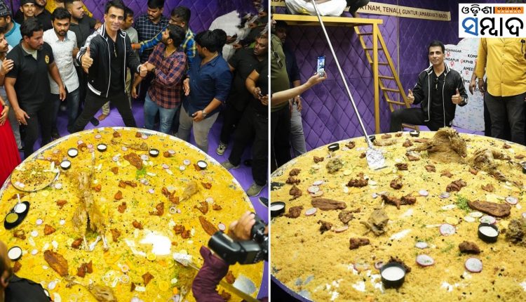 ଫଟୋରେ ଥିବା ଥାଳି ଏକ ସାଧାରଣ ଥାଳି ନୁହେଁ। ଏହା ଦେଶର ସବୁଠାରୁ ବଡ଼ ଥାଳି ବୋଲି କୁହାଯାଉଛି। ଏହି ଥାଳିରେ ଏକା ସାଙ୍ଗରେ ୨୦ଜଣ ବସି ଖାଇ ପାରିବେ। ସୋନୁଙ୍କୁ ଏହି ସ୍ୱତନ୍ତ୍ର ଉପହାର ଦେଇଛନ୍ତି ହାଇଦ୍ରାବାଦର ଜିସମତ ଜେଲମଣ୍ଡି । ସୋନୁ ସୁଦଙ୍କ ନାମରେ ‘ଇଣ୍ଡିଆଜ ବିଗେଷ୍ଟ ପ୍ଲେଟ’ର ନାମ ରଖାଯାଇଛି।