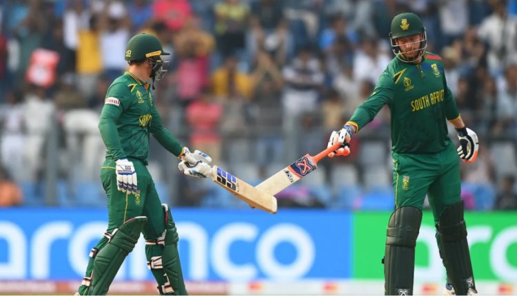 ୱାଙ୍ଖେଡ: ଦିନିକିଆ ବିଶ୍ୱକପ କ୍ରିକେଟରେ ମଙ୍ଗଳବାର କ୍ୱିଂଟନ ଡିକକଙ୍କ ବିସ୍ଫୋରକ ଶତକ ଏବଂ ହେନରିକ କ୍ଲାସେନଙ୍କ ଆକର୍ଷଣୀୟ ଅର୍ଦ୍ଧଶତକ ସହାୟତାରେ ଦକ୍ଷିଣ ଆଫ୍ରିକା ୩୮୩ ରନର ବିଜୟ ଲକ୍ଷ୍ୟ ବାଂଲାଦେଶ ସମ୍ମୁଖରେ ରଖିଛି । ଡି କକ ୧୪୦ ବଲରେ ୧୫ ଚୌକା ଓ ୭ ଛକା ସହାୟତାରେ ୧୭୪ ରନ କରିଥିବା ବେଳେ କ୍ଲାସେନ ୪୯ ବଲରେ ୨ ଚୌକା ଓ ୮ଛକା ବଳରେ ୯୦ ରନ କରି ଶତକ ହାସଲରୁ ବଂଚିତ ହୋଇଥିଲେ । ଅନ୍ୟମାନଙ୍କ ମଧ୍ୟରେ ଆଇଡେନ ମାର୍କରାମ ୬୦ ଓ ଡେଭିଡ ମିଲର ୩୪ ରନ କରି ନଟଆଉଟ ରହିଥିଲେ । ବାଂଲାଦେଶ ପକ୍ଷରୁ ହାସନ ମେହମୁଦ ସର୍ବାଧିକ ୨ଟି ୱିକେଟ ଅକ୍ତିଆର କରିଥିଲେ ।