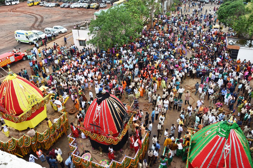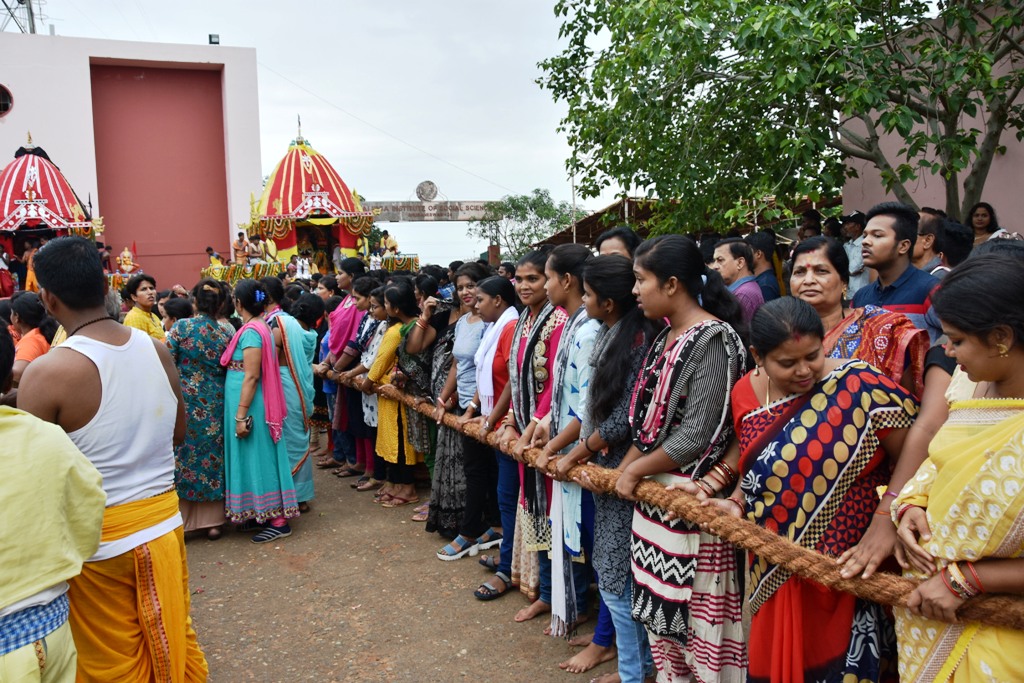 ସକାଳେ ପାରମ୍ପରିକ ରୀତିରେ ମଙ୍ଗଳଆରତୀ, ମଇଲମ, ତଡ଼ପଲାଗି, ରୋଷହୋମ, ଅବକାଶ ଏବଂ ସୂର୍ଯ୍ୟପୂଜା ସହିତ ରଥପୂଜା କାର୍ଯ୍ୟ ଅନୁଷ୍ଠିତ ହୋଇଥିଲା । ଅପରାହ୍ନରେ କିଟ୍ ର ପ୍ରତିଷ୍ଠାତା ତଥା ସାଂସଦ ଅଚ୍ୟୁତ ସାମନ୍ତ ପାରମ୍ପରିକ ଛେରାପହଁରା କରିଥିଲେ । ଏହାପରେ ମାଉସୀମା’ ମନ୍ଦିର ଅଭିମୁଖେ ରଥଟଣା ଯାଇଥିଲା ।