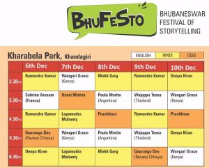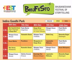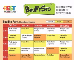 ଡିସେମ୍ବର ୬ରୁ ୧୦ ତାରିଖ ପର୍ଯ୍ୟନ୍ତ ଚାଲିବାକୁ ଥିବା ଏହି କାର୍ଯ୍ୟକ୍ରମରେ ବହୁ ଜାତୀୟ ତଥା ଅନ୍ତର୍ଜାତୀୟ ସ୍ତରର ଗାଳ୍ପିକ ଯୋଗଦେବେ । ବକୁଳ ଫାଉଣ୍ଡେସନ୍ ସହାୟତାରେ ବିଡିଏ ପକ୍ଷରୁ ‘ଭୁଫେଷ୍ଟୋ’ ଆୟୋଜନ କରାଯାଇଥିବା ବେଳେ ସହରର ୩ଟି ପାର୍କରେ ଏକକାଳୀନ ଆୟୋଜିତ ହେବ ।
