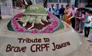 ଭୁବନେଶ୍ୱର : ପୁଲୱାମାଠାରେ ଆତ୍ମଘାତୀ ଆକ୍ରମଣରେ ସହିଦ ସିଆରପିଏଫ୍ ଯବାନଙ୍କୁ ଆନ୍ତର୍ଜାତୀୟ ଖ୍ୟାତି ସମ୍ପନ୍ନ ବାଲକା ଶିଳ୍ପୀ ସୁଦର୍ଶନ ପଟ୍ଟନାୟକ ନିଜର ବାଲୁକାକଳା ମାଧ୍ୟମରେ ଶ୍ରଦ୍ଧାଞ୍ଜଳି ଅର୍ପଣ କରିଛନ୍ତି ।