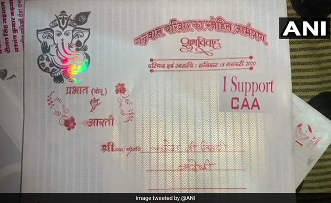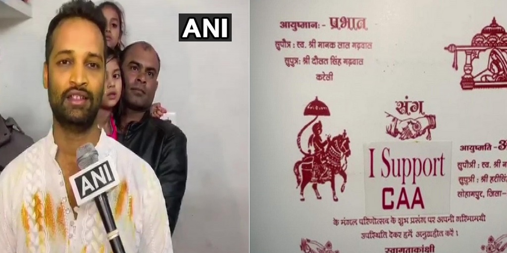 ଭୋପାଳ: ବିବାହ କାର୍ଡରେ ସିଏଏ ସମର୍ଥନ ବାର୍ତ୍ତା । ନାଗରିକତା ସଂଶୋଧନ ଆଇନକୁ ସମର୍ଥନ ଜଣାଇ ମଧ୍ୟପ୍ରଦେଶର ଜଣେ ଯୁବକ ଏଭଳି କରିଛନ୍ତି । ମଧ୍ୟପ୍ରଦେଶ ଜିଲ୍ଲାର ପ୍ରଭାତ ନାମକ ଜଣେ ଯୁବକ ନିଜ ବିବାହ କାର୍ଡରେ ‘ଆଇ ସପୋର୍ଟ ଫର୍ ସିଏଏ’ ଛପାଇଛନ୍ତି । ଏହି ଏହି ନିମନ୍ତ୍ରଣ କାର୍ଡ ସୋସିଆଲ ମିଡିଆରେ ବେଶ୍ ଭାଇରାଲ ହୋଇଛି ।