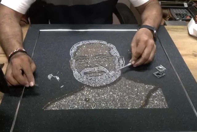 ଭିପୁଲ ଜେପି ମୋଦୀଙ୍କର ଜଣେ ବଡ ଫ୍ୟାନ । ସେ ସୁରତର ଜଣେ ଆର୍କିଟେକ ଇଞ୍ଜିନିୟର । ସେ ପ୍ରଧାନମନ୍ତ୍ରୀଙ୍କ ଫଟୋକୁ ଗୋଟିଏ କିମ୍ବା ଦୁଇଟି ନୁହେଁ ୭,୨୦୦ ହୀରାରେ ପ୍ରସ୍ତୁତ କରିଛନ୍ତି । ପ୍ରଧାନମନ୍ତ୍ରୀଙ୍କର ସୁନ୍ଦର ଓ ଆକର୍ଷଣୀୟ ପ୍ରତିଛବି ତିଆରି କରିବା ପାଇଁ ଭିପୁଲ ଜେପିଙ୍କୁ ୩ ମାସ ସମୟ ଲାଗିଥିଲା । ପ୍ରତିଛବିକୁ ତିଆରି କରିବା ପାଇଁ ତାଙ୍କୁ ବହୁତ ପରିଶ୍ରମ କରିବାକୁ ପଡିଥିଲା ବୋଲି ଭିପୁଲ ଜେପି କହିଛନ୍ତି । ୪ ପ୍ରକାର ଭିନ୍ନ ଭିନ୍ନ ଡାଇମଣ୍ଡରେ ତିଆରି କରିଛନ୍ତି ପ୍ରଧାନମନ୍ତ୍ରୀଙ୍କର ପ୍ରତିଛବି । ଏହି ଫଟୋକୁ ପ୍ରଧାନମନ୍ତ୍ରୀଙ୍କ ଜନ୍ମଦିନରେ ଉପହାର ଦେବା ପାଇଁ ଭିପୁଲ କହିଛନ୍ତି ।