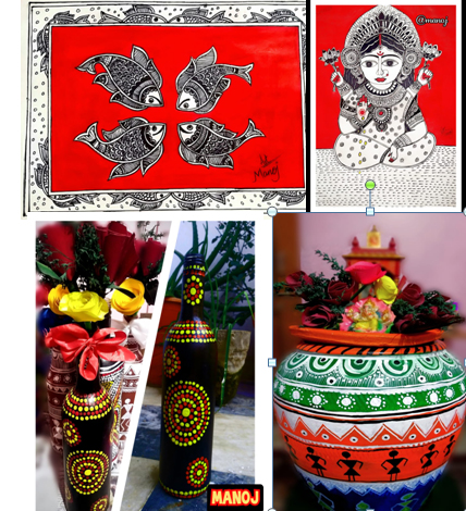ଭଲ ପାଠ ପଢ଼ାଇବା ସହ ମନୋଜ ଜଣେ ଉତମ କଳାକାର । ସେଥିପାଇଁ ବୋଧହୁଏ ପିଲାମାନଙ୍କ ପାଖରେ ଅତି ନିଜର ହୋଇ ପାରିଛନ୍ତି ମନୋଜ ସାର । ଲକଡାଉନ ସମୟରେ ସେ ଅନେକ କଳାକୃତି ପ୍ରସ୍ତୁତ କରିଛନ୍ତି । ଅବଢ଼ା କୁଡୁଆରେ ମହାପ୍ରଭୁଙ୍କ ଚିତ୍ର ବେଶ୍ ମନୋଲୋଭା ହୋଇପାରିଛି ।ଏହା ବ୍ୟତୀତ ବିଭିନ୍ନ ଅଦରକାରୀ ପଦାର୍ଥ ଯଥା ବୋତଲ, ସିଡି, ମଲାଟ ପ୍ରଭୃତିରେ ସେ ପ୍ରସ୍ତୁତ କରନ୍ତି ଆକର୍ଷଣୀୟ କଳାକୃତୀ । ଶଙ୍ଖ ଓ କଉଡିରେ ମଧ୍ୟ ନୂଆ ରୂପ ଦେଇ ଦିଅନ୍ତି ମନୋଜ । କଳ୍ପତରୁ ଆର୍ଟ କ୍ରାଫ୍ଟ ତରଫରୁସେ କଳା ଓ ଶିକ୍ଷକ ସମ୍ମାନ ପାଇଛନ୍ତି । ବିନା ପ୍ରଶିକ୍ଷଣରେ ସେ ଆଗେଇ ଚାଲିଛନ୍ତି ।