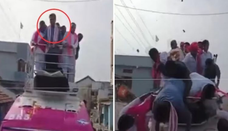 ହାଇଦ୍ରାବାଦ: ପାଖେଇ ଆସିଲାଣି ତେଲେଙ୍ଗାନା ନିର୍ବାଚନ। ଏଥିଲାଗି ଜୋରସୋରରେ ଚାଲିଛି ନିର୍ବାଚନ ପ୍ରଚାର। ଏହି ପ୍ରଚାର ଭିତରେ ଏକ ଖବର ସାମ୍ନାକୁ ଆସିଛି। ଯାହାକି ଏବେ ସୋସିଆଲ ମିଡିଆରେ ଭାଇରାଲ ହେଉଛି। ସୂଚନା ଅନୁସାରେ ତେଲେଙ୍ଗାନାରେ ବିଆରଏସର ନିର୍ବାଚନ ପ୍ରଚାର ପାଇଁ ବସ୍ ଉପରେ ଥିଲେ ମନ୍ତ୍ରୀ ଓ ନେତା। ହଠାତ୍ ବ୍ରେକ୍ ମାରିବା ଯୋଗୁଁ ତଳକୁ ଖସିପଡ଼ିଲେ ନେତା ଓ ମନ୍ତ୍ରୀ। ଯାହାର ଭିଡିଓ ଏବେ ଭାଇରାଲ ହୋଇଛି। ବଡ଼ ଧରଣର ଦୁର୍ଘଟଣାରୁ ବର୍ତ୍ତିଲେ ମନ୍ତ୍ରୀ କେଟିଆର।