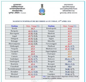 ଭୁବନେଶ୍ୱର: ସାରା ରାଜ୍ୟରେ ଅନୁଭୂତ ହେଉଛି ଅସହ୍ୟ ଗ୍ରୀଷ୍ମ ପ୍ରବାହ । ଚଳିତ ବର୍ଷ ପ୍ରଥମ ଥର ପାଇଁ ରାଜ୍ୟରେ ୪୪ ଡିଗ୍ରୀ ଡେଇଁଲା ତାପମାତ୍ରା । ଆଜି ରାଜ୍ୟରେ ୩୨ଟି ସହରର ତାପମାତ୍ରା ୪୦ ଡିଗ୍ରୀ ବା ତା’ ଉପରେ ରହିଛି । ସେଥିମଧ୍ୟରୁ ୧୦ଟି ସହରର ତାପମାତ୍ରା ୪୩ ଡିଗ୍ରୀ ବା ତା’ ଉପରେ ରହିଛି ।