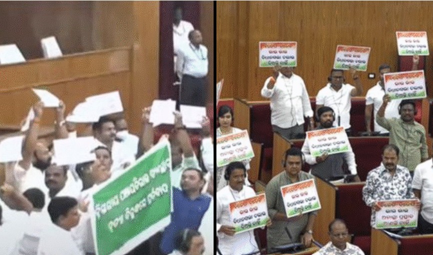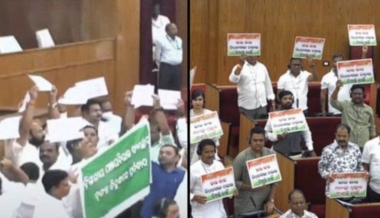 ଭୁବନେଶ୍ଵର: ମୌସୁମୀ ଅଧିବେଶନର ଚତୁର୍ଥ ଦିନରେ ବି ବିଧାନସଭା ଅଚଳ। ମାତ୍ର ୭ ମିନିଟ୍ ଚାଲିଲା ବିଧାନସଭା। କଂଗ୍ରେସ ଓ ବିଜେଡି ସଦସ୍ୟଙ୍କ ହୋହାଲ୍ଲାରେ ଚାଲିପାରୁନି ଗୃହ। ପ୍ରଶ୍ନ କାଳ ଆରମ୍ଭରୁ ପ୍ଲାକାର୍ଡ, ପୋଷ୍ଟର ଧରି ବିରୋଧୀ ସଦସ୍ୟ ହଟ୍ଟଗୋଳ କରିଛନ୍ତି। ଅପରାହ୍ନ ୪ଟା ଯାଏଁ ବାଚସ୍ପତି ଗୃହ ମୁଲତବୀ ଘୋଷଣା କରିଛନ୍ତି।