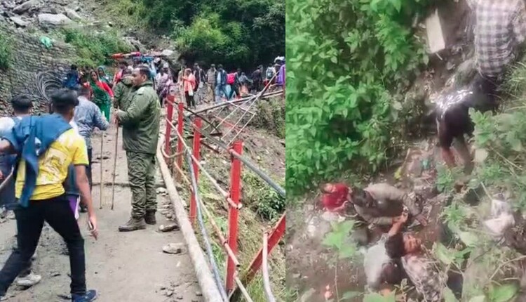 #WATCH | Uttarakhand | Two people dead, three injured due to the falling of stones from the top of a hill near Junglechatti ghat on the trek route to Kedarnath Dham, says Rudraprayag Police.