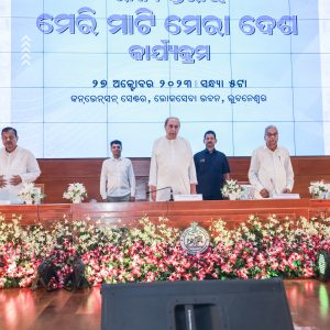 ଭୁବନେଶ୍ୱର: ଘଣ୍ଟ, ବାଦ୍ୟ, ଶଙ୍ଖ, ମହୁରୀ ଆଦି ବାଦ୍ୟ ଯନ୍ତ୍ର ଶବ୍ଦର ପ୍ରକମ୍ପନ ମଧ୍ୟରେ ମୁଖ୍ୟମନ୍ତ୍ରୀ ନବୀନ ପଟ୍ଟନାୟକ ଆଜି ରାଜ୍ୟସ୍ତରୀୟ ‘ମେରି ମାଟି ମେରା ଦେଶ’ କାର୍ଯ୍ୟକ୍ରମ ଅବସରରେ ‘ମାଟି କଳସ ଯାତ୍ରା’ର ଶୁଭାରମ୍ଭ କରିଛନ୍ତି। ଦେଶ ତଥା ରାଜ୍ୟର ସବୁ ପଞ୍ଚାୟତରୁ ସଂଗୃହିତ ପବିତ୍ର ମାଟିରେ ନୂଆଦିଲ୍ଲୀରେ ଏକ ଅମୃତ ବାଟିକା ପ୍ରତିଷ୍ଠା କରାଯିବ। ଆସନ୍ତାକାଲିଠାରୁ ନୂଆଦିଲ୍ଲୀ ଅଭିମୁଖେ ଏହି ମାଟି କଳସ ଯାତ୍ରା ଆରମ୍ଭ ହେବ। ୭୫ତମ ସ୍ୱାଧୀନତା ଦିବସ ପାଳନର ଅନ୍ତିମ ପର୍ଯ୍ୟାୟ କାର୍ଯ୍ୟକ୍ରମ ଅବସରରେ ଆଜି ଲୋକସେବା ଭବନ କନ୍ଭେନ୍ସନ୍ ସେଣ୍ଟରରେ ‘ମେରି ମାଟି ମେରା ଦେଶ’ର ରାଜ୍ୟସ୍ତରୀୟ ସମାପନ ଦିବସ ପାଳନ କରାଯାଇଥିଲା।