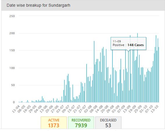ସୁନ୍ଦରଗଡ଼ ଜିଲ୍ଲାରେ ମୋଟ୍ ସଂକ୍ରମିତଙ୍କ ସଂଖ୍ୟା ୯ ହଜାର ୩୬୯ । ଗତ ୨୪ ଘଣ୍ଟାରେ ବାହାରିଛନ୍ତି ୧୬୧ ନୂଆ ଆକ୍ରାନ୍ତ । ସୁସ୍ତ ହେଲେଣି ୭ ହଜାର ୯୩୯ ଜଣ । ଜିଲ୍ଲାରେ ଆକ୍ଟିଭ କେସ୍ ରହିଛି ୧୩ ଶହ ୭୩ ।