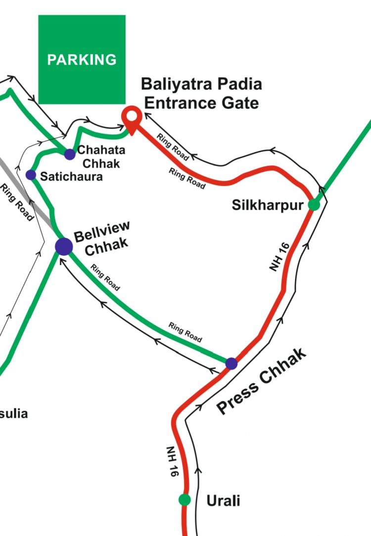୧. ଶିଖରପୁର ଚ୍ଛୁକ ପଟୁ ରିଙ୍ଗ ରୋଡ୍ ରେ ଆସୁଥୁବା ଯାନବାହାନ ଗୁଡ଼ିକ ମାତାମଠ ଛକ ଆଡ଼କୁ ଯିବାକୁ ଦିଆଯିବ ନାହିଁ । ସେମାନେ ଯୋବ୍ରା ଛକ ଠାରୁ ଆଗକୁ ଯାଇପାରିବେ ନାହିଁ ।