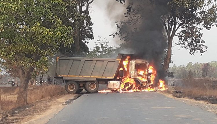 ଝାରସୁଗୁଡା : ରାସ୍ତା ମଝିରେ ଜଳୁଛି ୧୦ ଚକିଆ ଟ୍ରକ । ଅଳ୍ପକେ ଜୀବନ ବଞ୍ଚିଗଲା ଡ୍ରାଇଭର ଓ ହେଲପରଙ୍କର ।