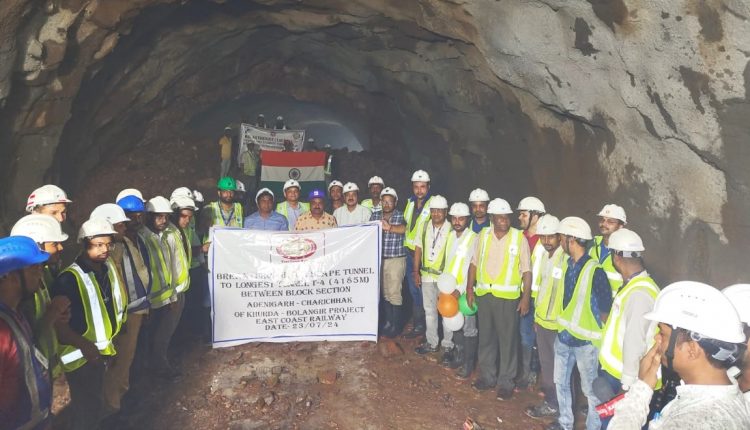 ଭୁବନେଶ୍ଵର: ଟନେଲ ସଂଯୋଗ କାର୍ଯ୍ୟରେ ପୂର୍ବତଟ ରେଳପଥ ଆଉ ଏକ ମାଇଲ ଖୁଣ୍ଟ ଅତିକ୍ରମ କରିଛି | ଖୋର୍ଦ୍ଧା ରୋଡ୍-ବଲାଙ୍ଗୀର ରେଳ ଲିଙ୍କ୍ ପ୍ରକଳ୍ପ (୩୦୧ କିଲୋମିଟର) ନିର୍ମାଣ କାର୍ଯ୍ୟରେ ନିୟୋଜିତ ରେଳପଥର ନିର୍ମାଣ ବିଭାଗର ଇଞ୍ଜିନିୟରିଂ ଟିମ୍ ମାଧପୁର ବନ ରେଞ୍ଜର ଦୁର୍ଗମ ସଂରକ୍ଷଣ ଜଙ୍ଗଲ ଅନ୍ତର୍ଗତ ଆଢ଼େଣିଗଡ଼ -ଚାରିଛକ ରେଳ ସେକ୍ସନ ମଧ୍ୟରେ ୪୧୮୫ ମିଟର ଲମ୍ବ ଟନେଲ ସହିତ ଜାତୀୟ ରାଜପଥକୁ ସଂଯୋଗ କରୁଥିବା ଏକ ଏସ୍କେପ ଟନେଲର ବ୍ରେକଥ୍ରୁ କାର୍ଯ୍ୟ ଆଜି କରାଯାଇଛି ।
