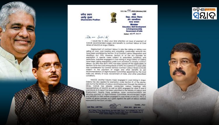 ଭୁବନେଶ୍ୱର : କେନ୍ଦ୍ର ଶିକ୍ଷା ମନ୍ତ୍ରୀ ଧର୍ମେନ୍ଦ୍ର ପ୍ରଧାନ କେନ୍ଦ୍ର କୋଇଲା, ଖଣି ଓ ସଂସଦୀୟ ବ୍ୟାପାର ମନ୍ତ୍ରୀ ପ୍ରହ୍ଲାଦ ଯୋଶୀ ଏବଂ କେନ୍ଦ୍ର ଶ୍ରମ ଓ ନିଯୁକ୍ତି ମନ୍ତ୍ରୀ ଭୂପେନ୍ଦର ଯାଦବଙ୍କୁ ପୃଥକ ପୃଥକ ଚିଠି ଲେଖିଛନ୍ତି । ହାଇ ପାୱାର୍ କମିଟି ଓ କେନ୍ଦ୍ରୀୟ ପରାମର୍ଶଦାତା ଠିକା ଶ୍ରମିକ ବୋର୍ଡ ଦ୍ଵାରା ଦିଆଯାଇଥିବା ପରାମର୍ଶକୁ କଡ଼ାକଡ଼ି ଭାବରେ ପାଳନ କରିବା ପାଇଁ ଅନୁରୋଧ କରିଛନ୍ତି । ଏହା ସହ ନାଲକୋର କୋଇଲା ଖଣିରେ ନିୟୋଜିତ ଠିକା ଶ୍ରମିକଙ୍କ ମଜୁରୀ ଓ ଅନ୍ୟାନ୍ୟ ସୁବିଧା ସୁନିଶ୍ଚିତ କରିବାକୁ ଉଭୟ ମନ୍ତ୍ରୀଙ୍କୁ ପତ୍ର ଜରିଆରେ ନିବେଦନ କରିଛନ୍ତି ।