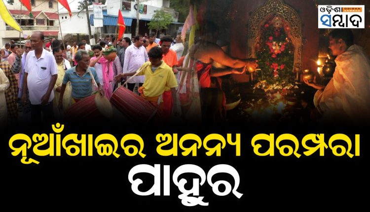 ପୂର୍ବ ନିର୍ଦ୍ଧାରିତ ଲଗ୍ନରେ ଦେବାଦେବୀଙ୍କ ପାଖରେ ନୂଆଁ ସମର୍ପଣ କରାଯାଏ। ଇଷ୍ଟଦେବୀ ମାଁଙ୍କ ପାଖରେ ପାହୁର ଲାଗିବା ପରେ ଗଡଜାତବାସୀଙ୍କୁ ଆତସବାଜୀ ଦ୍ୱାରା ଜଣାଇ ଦିଆଯାଏ ନବାନ୍ନ ଗ୍ରହଣ କରିବାକୁ। ପୂର୍ବରୁ ରାଜପ୍ରସାଦରୁ ଏହି ପାହୁର ଯାଉଥିଲା। ହେଲେ ରାଜୁଡା ଶାସନ ପରେ ଏହି ଦାୟୀତ୍ୱ ସୁବର୍ଣ୍ଣପୁର ପୌରପରିଷଦ ନେଇଛନ୍ତି। ସୁବର୍ଣ୍ଣପୁର ରାଜ ପରିବାରର ସଦସ୍ଯଙ୍କୁ ଡକାଯାଇ ପାହୁର ଭୋଗ ବଣ୍ଟାଯାଇ ଅଷ୍ଟଚଣ୍ଡୀଙ୍କୁ ସମର୍ପଣ କରାଯାଏ। ନୂଆଁଖାଇ ପରି ଏକ କୃଷିଭିତ୍ତିକ ପର୍ବରେ ମଣିଷର ସାମାଜିକ ଓ ସାଂସ୍କୃତିକ ଭାବଧାରାରେ ଦେବାଦେବୀ ବି ବାନ୍ଧି ହୋଇ ରହିଛନ୍ତି ପାହୁର ଭଳି ପରମ୍ପରାରେ। ଆଜି ବି ଏ ପରମ୍ପରାକୁ ବଜାୟ ରଖାଯାଇ ସୁବର୍ଣ୍ଣପୁର ଜିଲ୍ଲାରେ ନିଆରା ଢଙ୍ଗରେ ପାଳନ କରାଯାଉଛି ନୁଆଁଖାଇ।