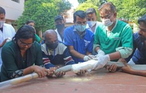 ଭୁବନେଶ୍ୱର : ଅହିରାଜର ହାଡକୁ ଯୋଡିବାରେ ସଫଳ ହେଲା ଓୟୁଏଟି ଭେଟେନାରୀ କଲେଜର ସର୍ଜରୀ ବିଭାଗ । ଅହିରାଜର ହାଡ଼କୁ ଯୋଡିବା ପାଇଁ ଓୟୁଏଟି ସ୍ଥିତ ଭେଟେରିନାରୀ କଲେଜର ସର୍ଜରୀ ବିଭାଗର ପ୍ରଫେସର ଡାକ୍ତର ଇନ୍ଦ୍ରମଣୀ ନାଥ ଏବଂ ତାଙ୍କର ଟିମ ମିଶି ସଫଳତାର ଅହିରାଜ ସାପର ପ୍ଲାଷ୍ଟର୍ କରିଥିଲେ । ଆଜି ସକାଳୁ ଆଉଥରେ ଏକ୍ସରେ କରିବା ପରେ ପ୍ରଫେସର ନାଥ ସାପର ଚିକିତ୍ସା ଆରମ୍ଭ କରିଥିଲେ ।