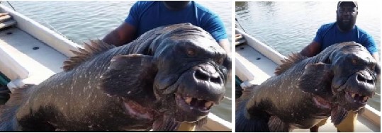 ଫଟୋରେ ଦେଖିବାକୁ ମିଳିଛି, ଜଣେ ବ୍ୟକ୍ତି ଡଙ୍ଗାରେ ଠିଆ ହୋଇଛନ୍ତି ଏବଂ ଏକ ବିଶାଳକାୟ ମାଛ ଧରିଛନ୍ତି । ଯାହାକୁ ସେ ସମୁଦ୍ରରୁ ଧରିଥିବା କହିଛନ୍ତି । ଯାହାର ଶରୀର ବହୁତ ବଡ, ପାଟି , ଆଖି, ଦାନ୍ତ, ନାକ, ଚେହେରାର ପୁରା ଗଠନ ଗୋରିଲା ପରି ଦେଖାଯାଉଛି । ଏହି ଫଟୋରେ ଲେଖାଯାଇଛି ଯେ, “ଏହା ଏକ ଆଲଜେରିଆର ଗୋରିଲା ମାଛ । ସାଧାରଣତଃ ଏହି ମାଛ ୩-୪ ଫୁଟ ଉଚ୍ଚ ହୋଇଥା’ନ୍ତି । ସେମାନେ ୧୩ ବର୍ଷ ପର୍ଯ୍ୟନ୍ତ ବଞ୍ଚନ୍ତି । କିନ୍ତୁ ଅନେକ ବୈଜ୍ଞାନିକଙ୍କ ମତର ସେମାନେ ୪୮ ବର୍ଷ ପର୍ଯ୍ୟନ୍ତ ବଞ୍ଚିପାରିବେ । ଏହି ଅଦ୍ଭୁତ ମାଛକୁ ଦେଖି ଲୋକେ ଆଶ୍ଚର୍ଯ୍ୟ ହୋଇଯାଇଛନ୍ତି ।