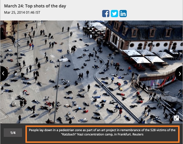 ବହୁ ଖୋଳତାଡ ପରେ ଜଣାପଡିଥିଲା । ଏହି ଫଟୋ ଚାଇନା କି ଇଟାଲୀର ନୁହେଁ ବରଂ ଜର୍ମାନୀର । ଏଠି ପ୍ରଶ୍ନ ଉଠେ ଏହି ଫଟୋ କାହିଁକି ଓ କେବେ ଉଠାଯାଇଥିଲା । ଜାଣି ଆଶ୍ଚର୍ଯ୍ୟ ହେବେ, ଜର୍ମାନୀର ଫ୍ରାଙ୍କଫୁର୍ଟଠାରେ ଏହି ଫଟୋକୁ ଏକ ଆର୍ଟ ପ୍ରୋଜେକ୍ଟ ପାଇଁ ୨୪ମାର୍ଚ୍ଚ, ୨୦୧୪ରେ କ୍ଲିକ୍ କରାଯାଇଥିଲା । ଏହି ଫଟୋରେ ରାସ୍ତାରେ ପଡିଥିବା ଲୋକ ମୃତ ନୁହେଁ ବରଂ ଫଟୋ ଉଠାଇବା ପାଇଁ ତଳେ ଶୋଇରହିଥିଲେ ।