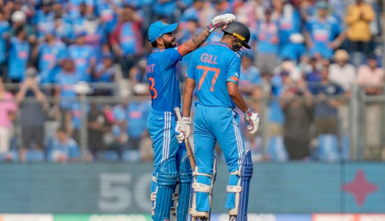 ୱାଙ୍ଖେଡ:ଚଳିତ ଦିନିକିଆ ବିଶ୍ୱକପ କ୍ରିକେଟରେ ଦଳଗତ ବ୍ୟାଟିଂ ପ୍ରଦର୍ଶନ ସହାୟତାରେ ଭାରତ ୩୫୮ ରନର ବିଶାଳ ଲକ୍ଷ୍ୟ ଶ୍ରୀଲଙ୍କା ସମ୍ମୁଖରେ ରଖିଛି । ପ୍ରଥମେ ବ୍ୟାଟିଂ କରି ଭାରତ ୮ ୱିକେଟ ବିନିମୟରେ ୩୫୭ ରନ ସଂଗ୍ରହ କରିଛି । ଅଧିନାୟକ ରୋହିତ ଶର୍ମା ୪ ରନ କରି ଆଉଟ ହେବା ପରେ ବିରାଟ କୋହଲି ଓ ଶୁଭମନ ଗିଲ ଇନିଂସ ସମ୍ଭାଳିଥିଲେ । ଉଭୟ ଦ୍ୱିତୀୟ ୱିକେଟରେ ୧୮୯ ରନ ଯୋଗ କରିଥିଲେ । ଗିଲ ୯୨ ଓ କୋହଲି ୮୮ ରନ କରି ପ୍ୟାଲିଭିୟନ ଫେରି ଯାଇଥିଲେ । ଏହା ପରେ ଶ୍ରେୟାଶ ଆୟାର ୮୨ ରନ କରିଥିଲେ । କୋହଲି ମାଷ୍ଟର ବ୍ଲାଷ୍ଟର ସଚିନ ତେନ୍ଦୁଲକରଙ୍କ ୪୯ ଶତକ ରେକର୍ଡର ସମକକ୍ଷ ହେବା ସୁଯୋଗ ପୁନର୍ବାର ହାତଛଡା କରିଛନ୍ତି ।