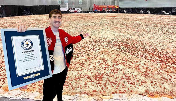 ଆମେରିକାର ‘ପିଜ୍ଜା ହଟ୍‌’ କମ୍ପାନି ନିକଟରେ ବିଶ୍ବର ବୃହତ୍ତମ ପିଜ୍ଜା ପ୍ରସ୍ତୁତ କରି ରେକର୍ଡ ସୃଷ୍ଟି କରିଛି। ଏହି ରେକର୍ଡଧାରୀ ପିଜ୍ଜାର ଆକାର ଓ ତାହାର ପ୍ରସ୍ତୁତିରେ ବ୍ୟବହୃତ ସାମଗ୍ରୀର ମାତ୍ରା ଏତେ ଯେ ଯାହା ଶୁଣିଲେ ଆପଣଙ୍କୁ ଆଶ୍ଚର୍ଯ୍ୟ କରିଦେବ । ଲସ୍‌ ଆଞ୍ଜେଲସ୍‌ ସ୍ଥିତ ଏକ ସମ୍ମିଳନୀ କେନ୍ଦ୍ରଠାରେ ୧୩ହଜାର ୯ଶହ ୯୩ ବର୍ଗଫୁଟ ପରିମିତ ଏହି ବିଶାଳକାୟ ପିଜ୍ଜାଟି ବାସ୍ତବ ରୂପ ନେଇଛି। ସେଥିରେ ୬ହଜାର ୧୯୩ କେଜି ମଇଦା ସହିତ ୮ହଜାର ୮୦୦ ପାଉଣ୍ଡ୍‌ରୁ ଅଧିକ ପରିମାଣର ଲହୁଣୀ ଓ ୨ହଜାର ୨୪୪ କେଜି ଟମାଟୋ ସସ୍‌ ବିନିଯୋଗ ହୋଇଛି।